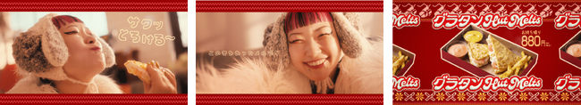 「この冬を、あったメルツ。」というキャッチフレーズのもと、2つのソースをディップしてサクとろ新食感を体験できる新商品「グラタンHut Melts」。寒い冬の中でも温かい気持ちになれるよう、今回のCMでは詩羽さんにモコモコのアウターを着用していただきました。「ハットメルツに冬がきた!」という詩羽さんのコメントと共にチーズとグラタンであったかとろける様子が描かれており、詩羽さんが「明太子ソース」と「ハニーマスタードソース」にディップして美味しそうにほおばる姿は必見です。