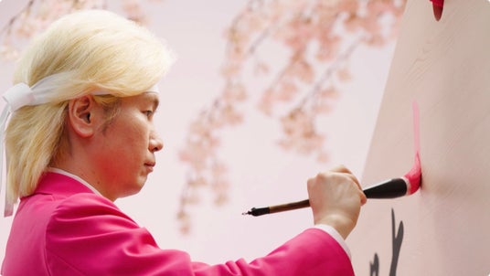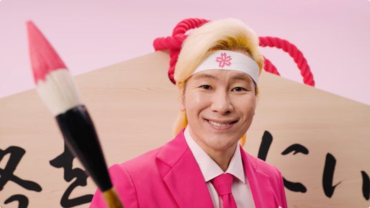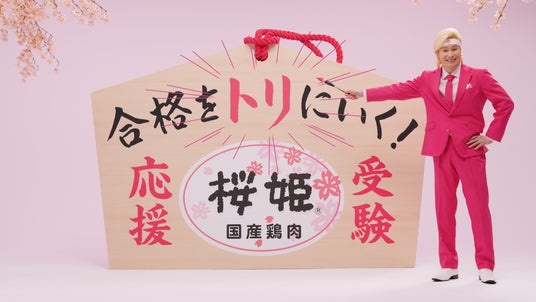 今回のWebムービーは、受験本番を迎える受験生やそれを支えるご家族のみなさんを、「合格をトリにいく!」のキャッチコピーのもと、イメージカラー“桜色”のスーツを着たカズレーザーさんが「桜姫」で応援します。また今回Webムービーに登場する「合格をトリにいく!」巨大絵馬は、カズレーザーさんの直筆になっており、シールとして店頭商品に貼付されます。カズレーザーさんによる合格祈願シールをぜひ店頭でもチェックしてみてください 。