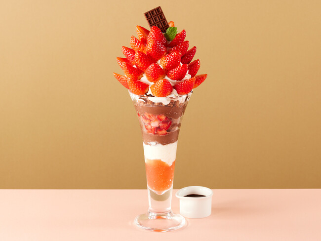 本フェアでは、15粒のいちごをトッピングしたリッチなご褒美パフェ「Very(ベリー) Berry(ベリー) 15(いちご)パフェ」をはじめ、“いちご×チョコレート”のマリアージュを存分にお楽しみいただける4品をご用意しました。サイズの異なる3種類のパフェとプレートメニューを、シーンに合わせてお選びください。