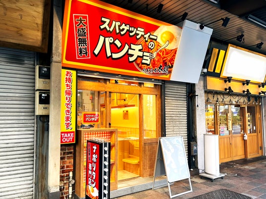 スパゲッティーのパンチョ錦糸町店は、懐かしさあふれる外観のカウンタースタイル店舗