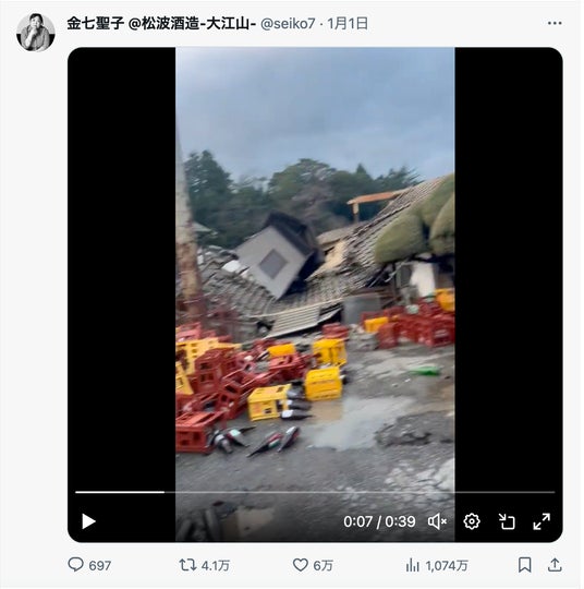 能登地震被害状況:松波酒造『銘柄:大江山』(石川県・奥能登)