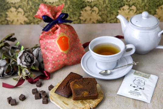 クーベルチュールチョコレートで焼き上げた「フィナンシェショコラ」と「ケークフィグアプリコ」を、香り豊かなオリジナルフレーバーティーと詰め合わせました。