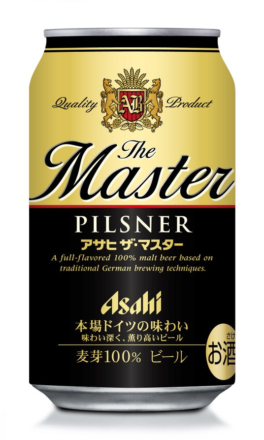 『アサヒ ザ・マスター』は、ビールの本場ドイツで最も飲まれており、程よい苦味による後味の良さが特長である「ピルスタイプ」のビールです。ビール醸造学の中で最も権威の高い大学の一つである「ミュンヘン工科大学」から醸造学の“マスター”の称号を与えられた醸造家が監修しました。“味わい深く、薫り高い”ビールで、“本場ドイツの味わい”が楽しめます。パッケージは、ドイツの国旗を想起させる金・黒・赤を使用し、「The Master」の文字を缶体中央に大きく記載しました。