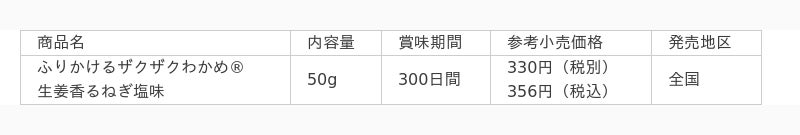 シリーズ第3弾となる「生姜香るねぎ塩味」は、調味料やカップ麺などで注目を浴びる“ねぎ塩・ねぎ生姜”の味をふりかけで再現しました。しっかり食べて健康でいたい、食材のやりくりを上手にしたい、といった潜在需要に応え、わかめ商品のさらなる拡大を目指します。