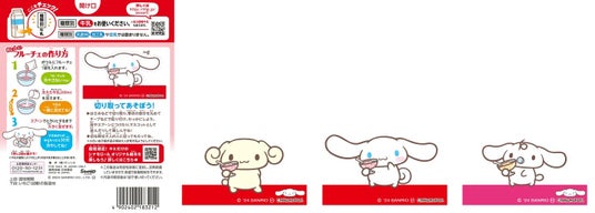 コラボパッケージ裏面に、切り取って親子で遊べるシナモロールのゆび人形のイラストをあしらいました。