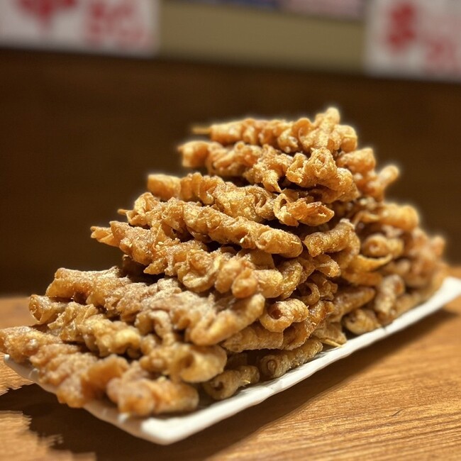 「新時代」は、『伝串』という商品が名物で、累計販売本数1億本を超えます。揚げ皮串発祥のお店です。