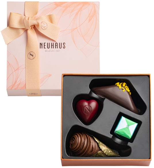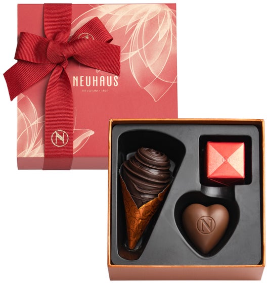 2024年バレンタインシーズン限定の「ハート ミルク」やファンの多い「コルネ フォンダン」、口溶けなめらかな「ボンボン モエルー」のノイハウスを代表するチョコレート3種をお楽しみいただけます。ノイハウスならではの魅力を存分に味わえるボックスです。