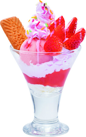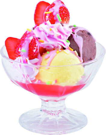 いちごジェラートとチョコアイス、バニラアイスをのせた、さっぱりとした味わいが食後にぴったりのサンデーです。