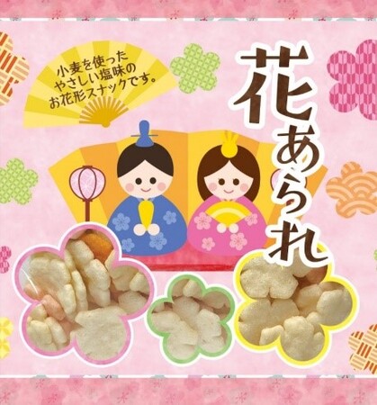 商品特徴: かわいらしいお花の形をした、塩味の小麦スナックです。