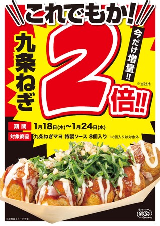 キャンペーン内容:『九条ねぎマヨ 特製ソース (8個入り)』のトッピングの九条ねぎが2倍!!(当社比)