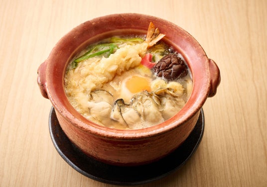 家族亭の鍋焼きうどんが、旬の牡蠣とともに贅沢に進化。香り高いおだしと絡み合ううどん、口いっぱいに広がる牡蠣の旨み。特別なひとときにふさわしい、ちょっと贅沢なかき入り鍋焼きうどんです。