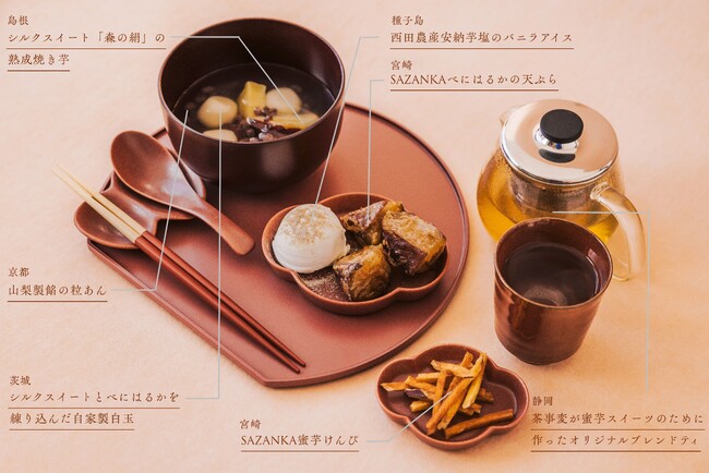 『蜜芋尽くしの焼き芋ぜんざい ~特製お茶、お茶請け付~』 2,480円 (税込)