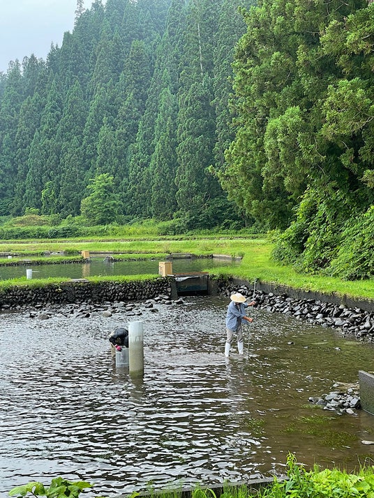鮎は生育環境を整えるのが非常に難しく、通常は温度が一定の地下水で育てるケースがほとんどですが、当社は雄物川(おものがわ)の清流を引き込み養殖をしています。プランクトンのいない地下水と異なり、雄物川の水にはプランクトンが豊富で苔も多く発生するため、より自然環境に近い鮎を養殖できるのが特徴で、当社の「こまち鮎」は「天然ものよりも美味しい」と評判をいただいています。