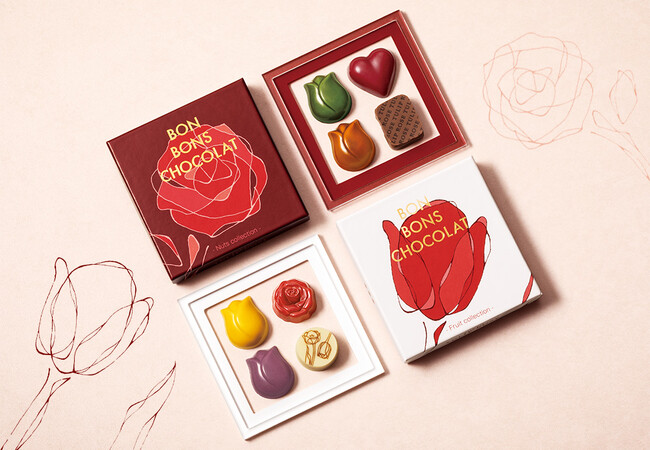 毎年楽しみにしているファンが多い、バレンタインシーズンにしか出会えないTOKYOチューリップローズのボンボンショコラ。2024年のバレンタインは、シックな赤の「ナッツコレクション」と華やかな白の「フルーツコレクション」が登場です。シェフ金井理仁らしいエスプリがきいたショコラの数々は、1粒ずつじっくり楽しみたい贅沢な味わい。新作「赤ワイン」の芳醇な味わいにもご注目!