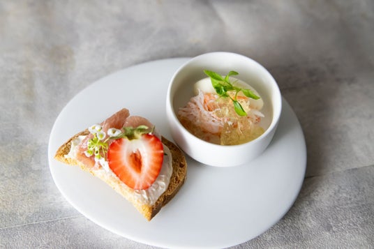 神戸ポークの生ハムと苺 クリームチーズのタルティーヌ