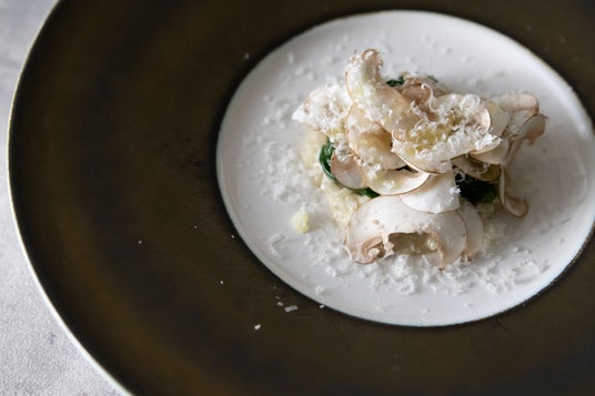 六甲マッシュルームとホタテ ちぢみホウレン草のリゾット