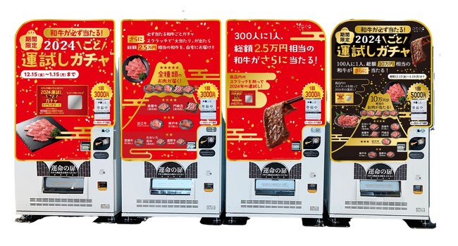 ??スクラッチ大当たり商品内容:自販機で出てきた商品に加え、2.5万円相当のご当地和牛セットをご自宅にお届けします。(※商品の受け取りにはスクラッチ内に記載されたリンク先の専用フォームから申し込みが必要です。)