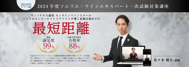 オンラインに特化したワインスクール ヴィノテラスでは、2024年3月6日(水)より、2024年度ソムリエ・ワインエキスパート試験対策講座を開講。講座開始に先駆け、オンライン無料体験会を開催いたします!試験対策講座を担当する佐々木講師自らが、講座の進め方や試験に向けての心構えなどを解説。どなたでも無料でご参加頂けますので、是非お気軽にお申し込みください。参加費:無料