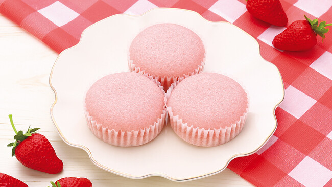 いちごの風味が口の中いっぱいに広がる蒸しケーキです。
