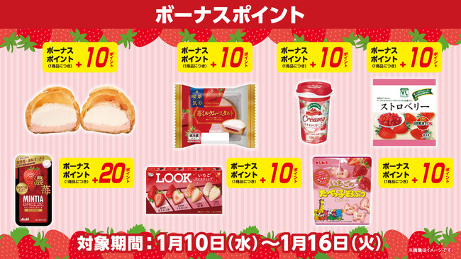 いちご関連対象商品を購入するとおトクなボーナスポイントがついてくる!