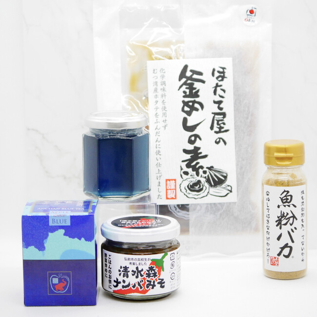 内容:青い森の青色りんごジャム120g×1、魚粉バカ50g×1、