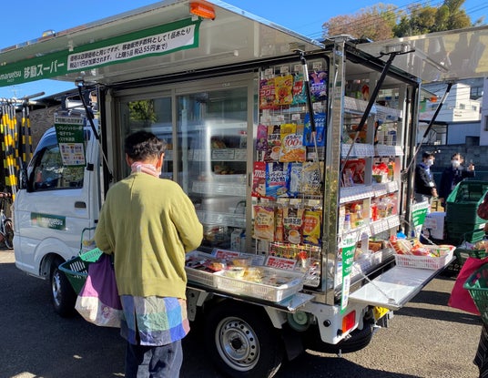 2023年11月14日に、マルエツ 四季の森フォレオ店(神奈川県横浜市旭区)で運行を開始した「移動スーパー」1号車では、ご利用のお客さまから「近くまで来てくれて助かっている」といったお声をいただいております。