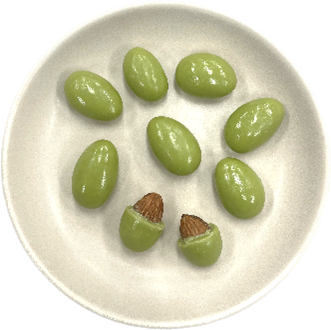 あるとき、アボカドを食べていたところ「なんだかアーモンドチョコに似ている」と思ったことから開発がスタート。よりアボカド感を出せるよう試行錯誤を重ね、外側のチョコレートをアボカドの色に近づけることに成功しました。まるでアボカド?と楽しんでいただける、遊び心あるチョコレートです。