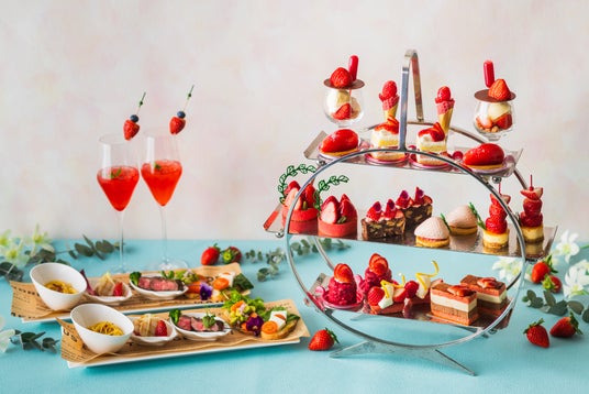 イチゴサンマルク、イチゴタルト、イチゴパフェなど、みずみずしいイチゴを飾った色鮮やかな全11種のスイーツをご用意いたしました。また、セイボリーには牛サーロイン肉のソテーバルサミコソース・ホタテ貝のグリルとイチゴのセビーチェアンディーブ添えなどセイボリーも充実。イチゴの甘酸っぱい香りがふわっと広がるドリンクもご用意いたしました。