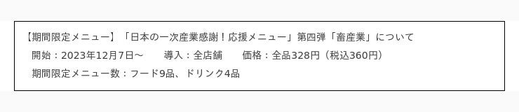 ■「日本の一次産業感謝!応援メニュー」第四弾「畜産業」