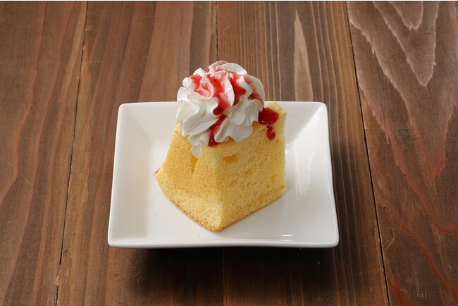 ふわふわのシフォンケーキに、とちおとめや紅ほっぺ等の厳選した国産苺シロップと生クリーム使用のホイップを乗せました。