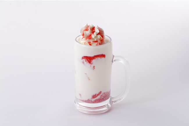 とちおとめや紅ほっぺ等の厳選した国産苺シロップとミルクを合わせて、生クリーム使用のホイップをのせたデザートドリンクです。