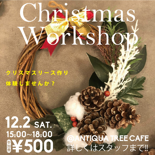 1日限定の『クリスマスリース作りWORKSHOP』を開催いたします。