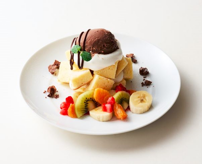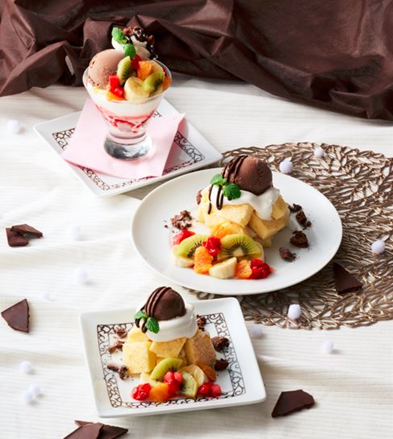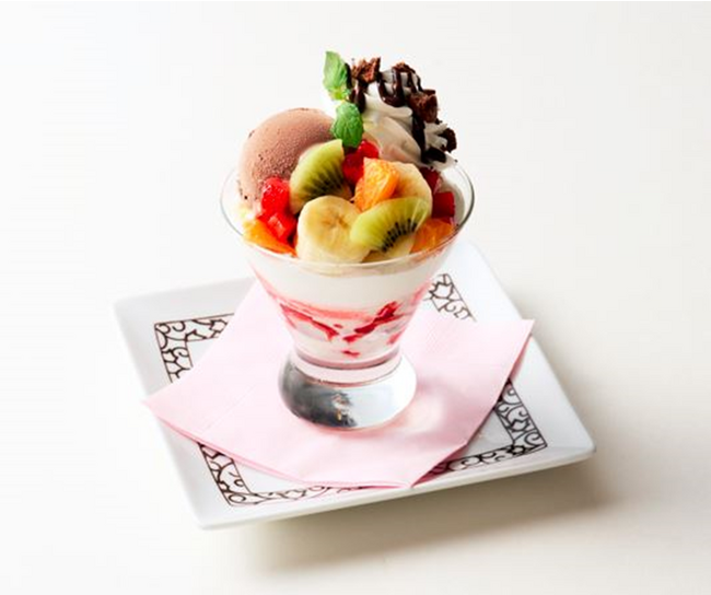芳醇な香りのガーナジェラートと、4種のフルーツを盛り付けた贅沢なパフェです。
