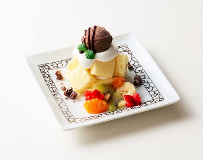 しっとりとした食感が特徴の元町シフォンに、ふんわりホイップとガーナジェラートを添えました。