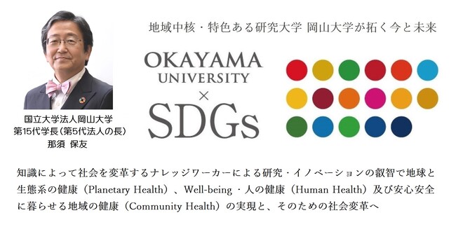 国立大学法人岡山大学は、国連の「持続可能な開発目標(SDGs)」を支援しています。また、政府の第1回「ジャパンSDGsアワード」特別賞を受賞しています。地域中核・特色ある研究大学として共育共創を進める岡山大学にご期待ください