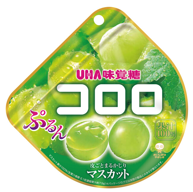現在全国のラインナップは「グレープ」「マスカット」 。「グレープ」は果汁100%※1に加えて赤ブドウ発酵エキスとぶどうエキスを配合することで皮ごとまるかじりしたような、深い味わいをお楽しみいただけます。「マスカット」は果汁100%※2使用することでコロロでしか味わえないまるでマスカットの果実そのものを食べるようなジューシー感と果汁感に仕上げております。