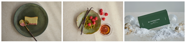 店頭では、定番フレーバーやポップアップストア限定フレーバーに加え、初雪のような純白に仕上げたケーキに2種類の赤いベリーを組み合わせた「Mr. CHEESECAKE White Berry(ミスターチーズケーキ ホワイトベリー)」と、濃厚な味わいのローストピスタチオを贅沢に使用した「Mr. CHEESECAKE Pistachio Raspberry(ミスターチーズケーキ ピスタチオラズベリー)」のホリデー限定フレーバー2種類を販売します。
