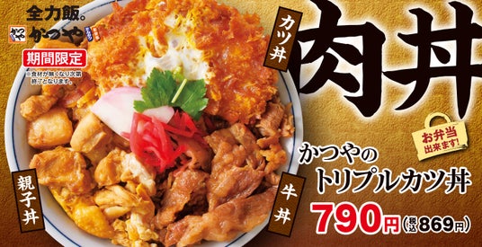 みんなのがっつり食べたい!を叶えたい。とんかつ専門店「かつや」2024年初の期間限定メニュー、夢の肉丼三拍子「かつやのトリプルカツ丼」を2024年1月12日(金)より販売を開始いたします。