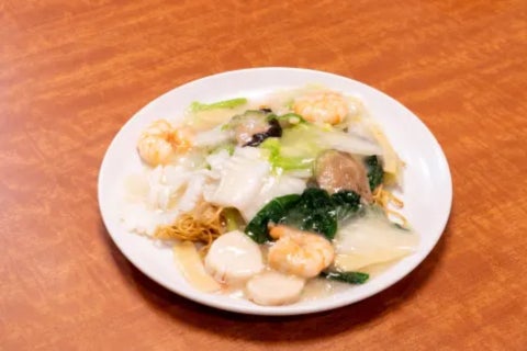 横浜中華街における四川料理の名店・福満園のあんかけ焼きそばです。塩ベースの味つけでさっぱりとお召し上がりいただけます。