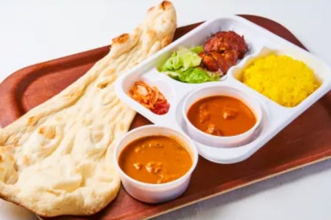2種のカレーにインドの代表的料理・タンドリーチキンをセットで。ご家族や友人とシェアもできるボリューム感です。