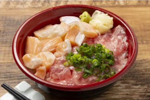 マグロとサーモンの贅沢なハーフ丼。本格江戸前寿司の魚がしが誇る、鮮度にこだわったお弁当です。
