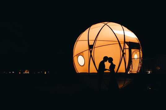 夜の公園をひとりじめ。球体テントを背景に、どこか近代的でスタイリッシュな雰囲気のある一枚を。