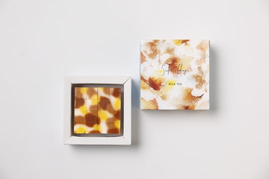 ビターチョコレートベースのガナッシュは、ややビター感もある紅茶の高貴で深みのある味に仕上げ、その上にココナッツの優しいミルクを感じるホワイトガナッシュを重ねました。