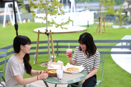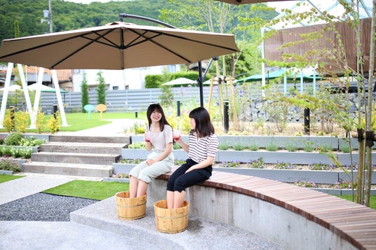 農園カフェ湯郷に隣接する「湯の華ガーデン」は2022年5月14日にオープンしました。花が咲き誇り、青々とした芝生の絨毯が広がるガーデンで、カフェで注文した軽食やスイーツを楽しんでいただけるおしゃピクスポットです。また、足湯エリアも設けられ、美人の湯と言われる湯郷温泉を気軽に堪能していただけます。足湯には季節の花を浮かべることができ、他にはない足湯を楽しんでいただけます。広々としたガーデン内でゆっくり自然と触れ合いながらリラックスできる施設です。今後も、シーズンやイベントに合わせて、季節のフルーツを使ったスイーツ開発に取り組んでまいります。