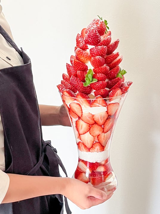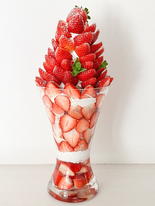 いちご約1kg使用!高さ約40センチの超巨大「いちご狩りパフェ」