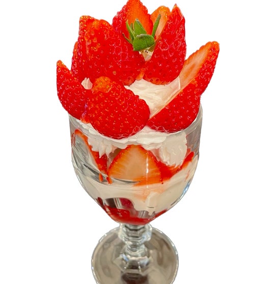 <紅虎菜舗>「とちおとめイチゴパフェ」パフェ単品 1,210円(イ)/ お食事とご一緒で 990円(イ)ー佐野市産「とちおとめ」たっぷりのイチゴパフェ。佐野プレミアム・アウトレット限定商品。