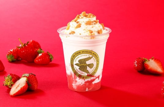 <チーズガーデン>「フロマージュドリンク ストロベリー」780円ーストロベリージュレをフローズン仕立てのフロマージュドリンクに加え、甘い香りのストロベリージュレと爽やかなレアチーズケーキの風味が同時に楽しめる。