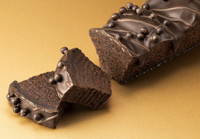 さらに、クリスピーなパールショコラでバレンタインらしくドレスアップ。食感にもアクセントを加えました。切り口から旨味があふれ出てくるような味わいは、まるで“バームクーヘンのショコラテリーヌ”です。ずっしり重厚で濃厚にとろけるこの味わい、ぜひ薄くスライスしてじっくりとご堪能ください。