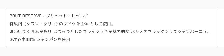 世界に認められたシャンパーニュ、『パルメ ブリュット・レゼルヴ』を使用した口どけなめらかなクリーム入りのトリュフ。