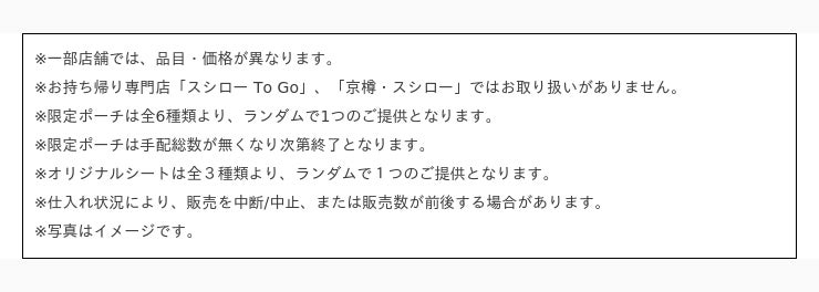 今回、“ミニしゃり”を活用したセットメニューを開発しました。まぐろやサーモンなどのスシローで人気のネタ5貫を“ミニしゃり”にして、さらにエビフライやウインナー、デザートのゼリーが付いたセットです。お子さまはもちろん、一皿で様々なおすしを楽しみたい大人の方にもおすすめです。さらに、「ぷちローセット」には、今回のコラボのために描き下ろされたサンリオの人気キャラクター「シナモロール」のオリジナルファスナーポーチが付いてきます。「シナモロール」のオリジナルファスナーポーチは全6種類あり、ランダムで提供いたします。また、期間中にスシロー公式X(旧Twitter)をフォローし、対象の投稿をリポストした方の中から抽選で10名さまに“スシローで使用できるお食事券”が当たるキャンペーンも実施いたします。
